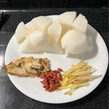 2. 蘿蔔去頭去皮切塊、薑切絲、當歸依中藥材行指示處理(我們買的當歸是不用洗,也不用泡的)。