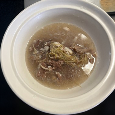 1. 將雅方薑絲羊肉湯解凍倒出,加半碗水加熱,再撈出羊肉片備用,避免過熟。
