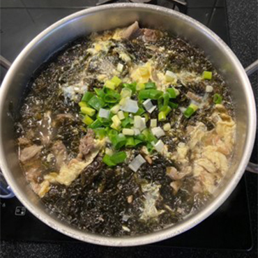 3. 紫菜 5 片先按包裝說明放入水中沖洗一下,接著再放入羊肉爐煮滾。