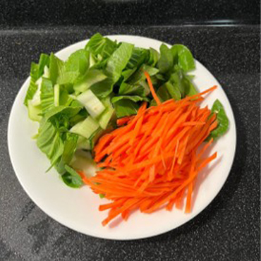 4. 紅蘿蔔切(刨)細絲、青江菜切碎。