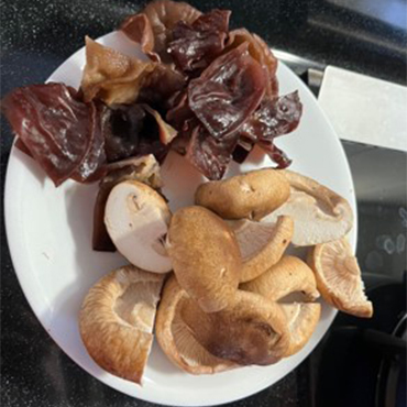 6. 再加入木耳及香菇。